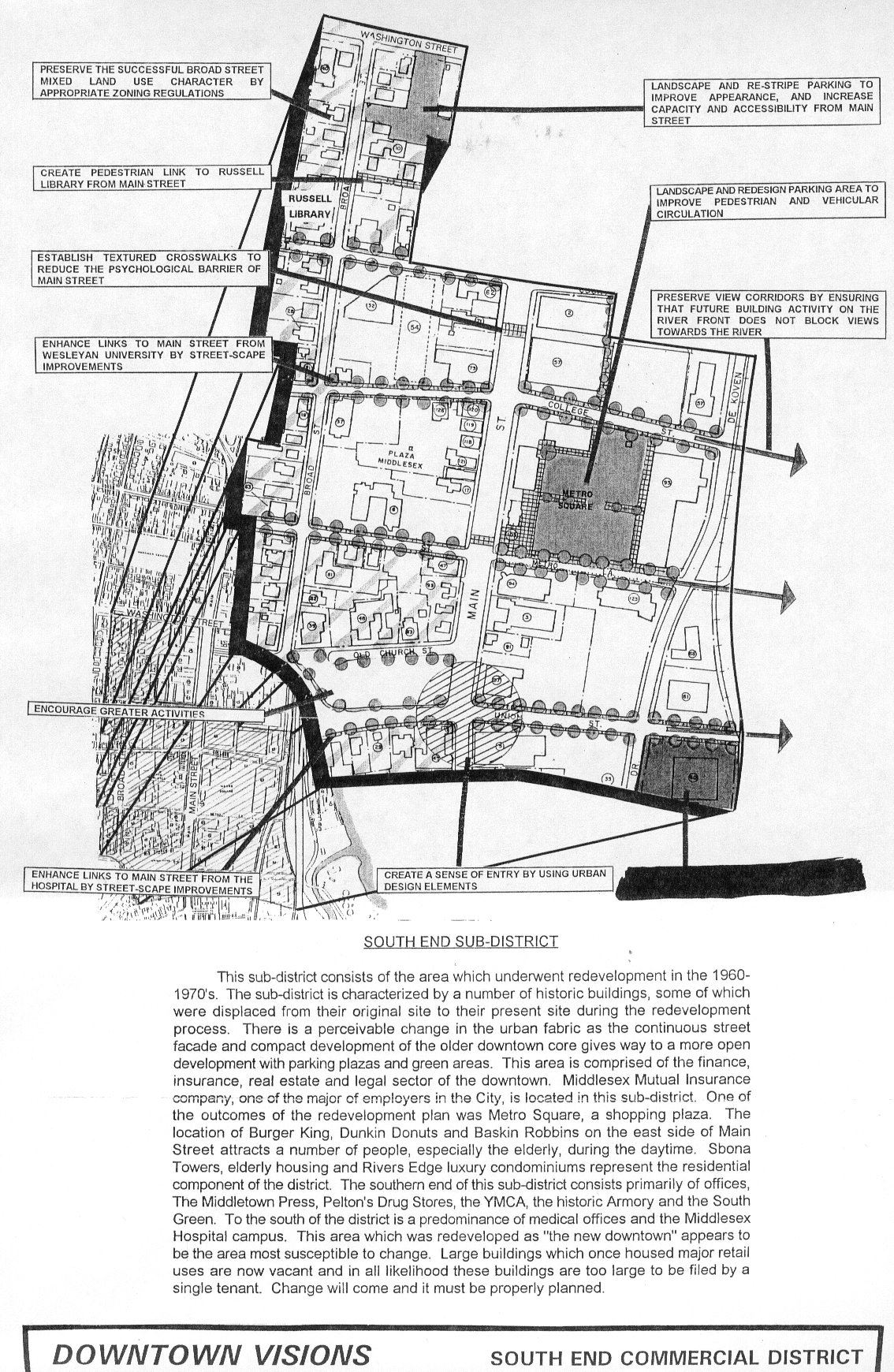 To the south of the district is a predominance of medical offices and the Middlesex Hospital campus. This area which was redeveloped as "the new downtown" appears to be the area most susceptible to change. Large buildings which once housed major retail uses are now vacant and in all likelihood these buildings are too large to be filed by a single tenant. Change will come and it must be properly planned.